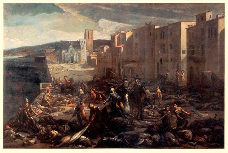 Una de les imatges que més m’impressiona són les imatges medievals que representen les ciutats infestades per la pesta. Sobretot els del gòtic, quan el paisatge va apareixent de rerefons i retrata els paisatges amb considerables dosis de realisme. La peste que envaeix Europa al segle al segle XIV i que es reprodueix ocasionalment amb intermitències i altsibaixos deixa un rastre de mort col·lectiva, de terror a les ciutats i de pànic físic i psicològic. Les escenes del triomf de la mort que no s’atura davant de res ni de ningú, dels cadàvers i esquelets, dels empestats foragitats fora de les concentracions urbanes es perpetuen en la iconografia, les imatges plàstiques, la creació literària, la vida religiosa i la cultura popular. La dansa de la mort en totes les seves versions n’és un testimoni directe. La més imponent creació artística de Peter Brueghel el Vell, El triomf de la mort (1562-1563 Museu del Prado) és, potser, la més extensa representació de tots els danys que pot causar als humans fins el més petit detall. Els grans formats de la pintura del sis-cents i del set-cents no escatimen el realisme de les tragèdies col·lectives i és així com el pintor Miquel Serra (1658-1733), tarragoní de naixença instal·lat a Marsella va pintar un impressionant tríptic sobre la pesta que va assolar la ciutat el 1720 amb una tonalitat tan tràgica com la de Heinrich Erndel III va reflectir la mateixa situació.