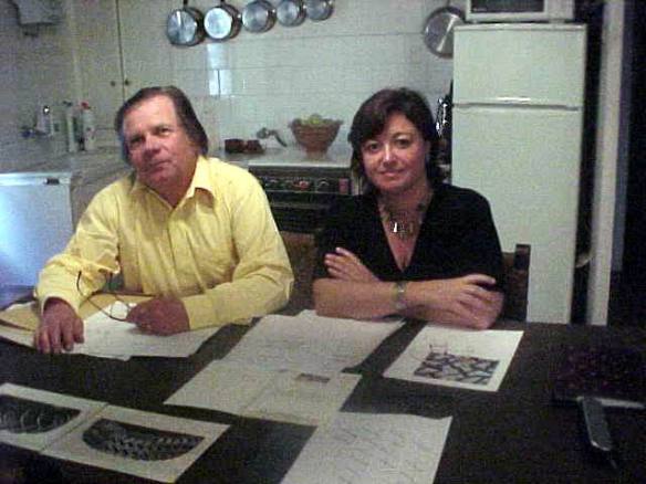 Amb Peter Stämpfli al menjador de casa seva, al carrer d’en Bosc. Preparàvem el número 2 de la plaqueta dels ‘Papers de Terramar’, Les empremtes de la fugacitat, amb els poemes de David Jou sobre l’obra d’Stämpfli.