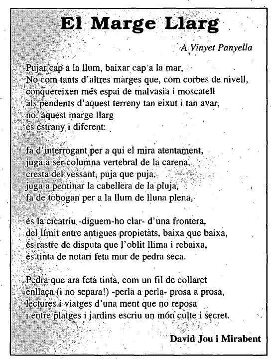 L’any següent en David Jou em va dedicar aquest poema a la seva secció de l’Eco de Sitges, Fulls del meu dietari.