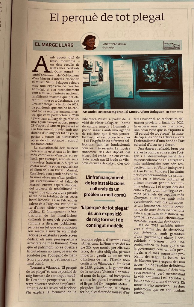 És una reivindicació a favor del patrimoni, sí, però també a favor de l’economia a escala local, de les rendes de l’Hospital de Sant Joan Baptista, de la gastronomia i de l’enologia; de la comunitat local, que hem de ser els primers a disfrutar-ho i apreciar-ho; del turisme, si de debò creiem que el turisme cultural i enològic tenen valor per a l’empresariat i compten per a alguna cosa a Sitges.